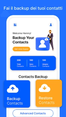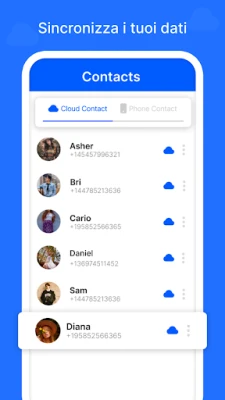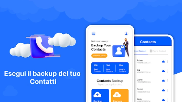 **Di riserva dei contatti**: proteggi i tuoi contatti importanti con backup rapidi e un ripristino istantaneo. Gestisci, condividi ed esporta facilmente la tua rubrica, garantendo che i tuoi dati non vadano mai persi. Semplice e avanzata.