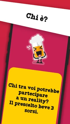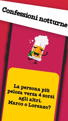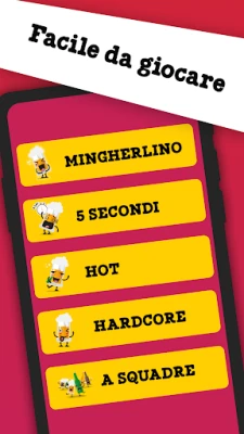 Preparati a un vortice di divertimento con 7 modalità di gioco originali, ciascuna pronta a trasformare la tua serata. Affronta l'imprevedibile con **MINGHERLINO**, testa la tua rapidità mentale con **INDOVINA IN 5 SEC.!**, svela segreti con **SPORCO**, infiamma l'atmosfera con **COPPIA HOT!**, lasciati travolgere da **FOLLIA**, spingiti oltre i limiti con **HARDCORE** e unisci le forze per la **SFIDA A SQUADRE**. Ogni modalità offre un mix esplosivo di adrenalina e ilarità, garantendo che nessuna festa sia mai uguale all'altra. È il momento di scoprire chi è davvero il più astuto, il più rapido e il più scatenato del gruppo!