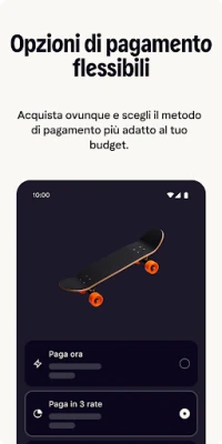Scopri Klarna: flessibilità nei pagamenti e vantaggi esclusivi. Decidi come pagare, in 3 rate senza interessi o dopo 30 giorni. Acquista nei tuoi negozi preferiti, ottieni fino al 10% di cashback e gestisci le tue carte fedeltà, tutto nell'app Klarna.