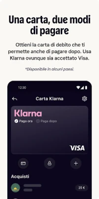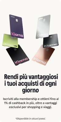 Ma Klarna è molto più di un metodo di pagamento; è un partner completo per la gestione delle tue finanze. Gestisci un Saldo Klarna per rimborsi istantanei e per trasformare il tuo cashback in denaro sonante. Scopri i nostri conti di risparmio, flessibili o a termine fisso, progettati per farti guadagnare interessi senza costi mensili. La tua spesa è protetta: con la carta Klarna, puoi pagare ovunque sia accettata Visa, con la massima flessibilità e senza impatti sul credito. E per una tranquillità totale, Klarna semplifica i resi: segnalali dall'app per mettere in pausa il pagamento e traccia ogni consegna in tempo reale, con aggiornamenti e foto. Per qualsiasi necessità, l'assistenza clienti di Klarna è disponibile 24/7 tramite chat nell'app.