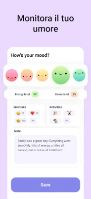 L'applicazione integra strumenti specifici per affrontare le sfide quotidiane e celebrare i successi. Il 'Diario delle situazioni negative' ti offre una strategia efficace per decodificare e superare i momenti difficili. Registrando eventi stressanti, pensieri associati ed emozioni provate, potrai identificare schemi ricorrenti e distorsioni cognitive, trasformando la tua reazione agli eventi e liberando la mente dalla negatività. Parallelamente, il 'Diario dei momenti positivi', un vero e proprio diario della gratitudine, ti invita a focalizzarti sulle gioie, grandi o piccole che siano. Annotare esperienze, pensieri ed emozioni positive ti permette di apprezzare la bellezza del quotidiano, riducendo l'impatto dello stress e promuovendo una mentalità più serena.