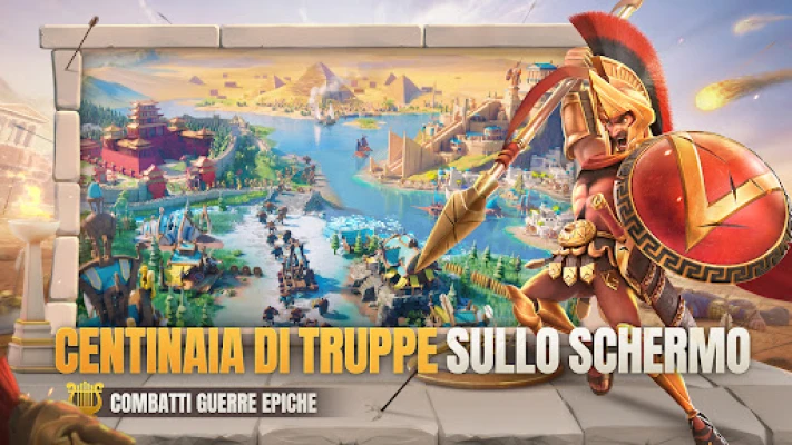 Esplora un mappamondo vasto e senza interruzioni, dove ogni azione si svolge in un unico, imponente scenario popolato da giocatori e PNG. L'innovativa funzione di zoom infinito, per la prima volta su mobile, ti permette di passare fluidamente da una visione globale a dettagliate inquadrature di singole città o avamposti. La terra stessa è un campo di battaglia, con fiumi serpeggianti, imponenti catene montuose e passi strategici da catturare. Invia i tuoi esploratori a dissolvere la fitta nebbia che avvolge il mondo di Rise of Kingdoms, svelando templi perduti, fortezze barbare e antichi tesori.
