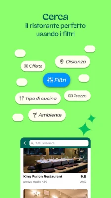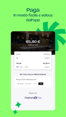 TheFork trasforma la ricerca e la prenotazione del vostro prossimo tavolo in un'esperienza intuitiva e senza sforzo. Dimenticate le attese e le complicazioni: pochi tocchi vi separeranno dalla vostra prossima avventura gastronomica. Ma non è tutto: i nostri partner offrono vantaggi esclusivi durante tutto l'anno, applicati automaticamente al momento della selezione, rendendo l'alta cucina più accessibile. Affidatevi alla saggezza collettiva: oltre 20 milioni di recensioni autentiche, lasciate da veri commensali, guidano ogni vostra scelta, assicurando che ogni esperienza sia all'altezza delle aspettative. Che sia per un incontro d'affari, una ricorrenza speciale o una serata intima, TheFork propone una selezione impareggiabile di quasi 55.000 ristoranti, arricchita da 40.000 foto, menu dettagliati e profili completi per aiutarvi a trovare sempre il luogo ideale.