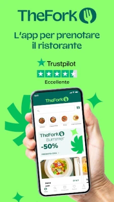 Scoprite il piacere di una cena perfetta, un pranzo indimenticabile o un brunch raffinato con TheFork, il vostro alleato culinario in Italia, Francia, Spagna, Regno Unito, Paesi Bassi, Belgio, Svizzera, Portogallo, Danimarca e Svezia. Con TheFork, l'eccellenza gastronomica è a portata di mano, offrendovi un accesso privilegiato a migliaia di ristoranti. Preparatevi inoltre a vivere un'esperienza culinaria straordinaria con TheFork Summer, l'evento stagionale che, dal 19 giugno al 21 settembre 2025, vi invita a esplorare sapori e atmosfere uniche, proponendo uno sconto del 50% su una vasta selezione di locali.